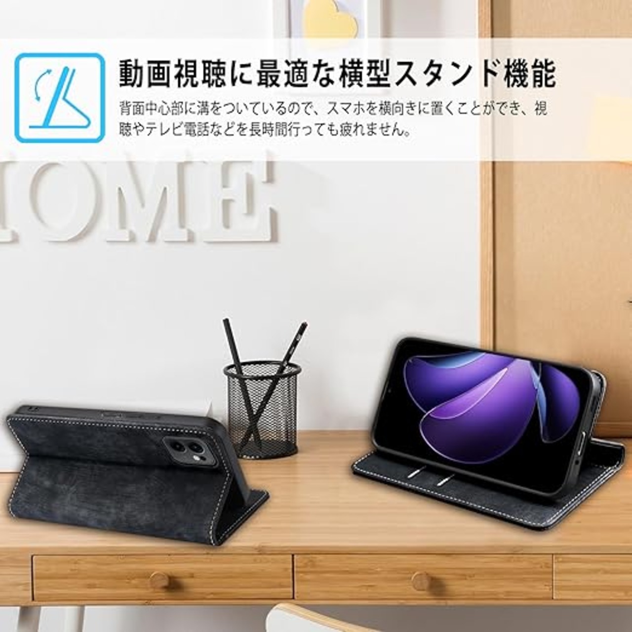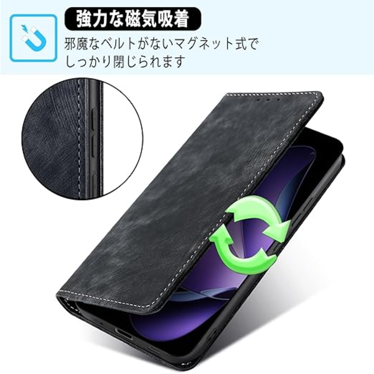 【素材】:NicMoolスマホケース手帳型外部は上質な合皮レザー素材を採用しており、傷や埃を防ぐことができます、滑りにくく、指紋、油分などもつきにくく。外部のPUレザー+内部の黒TPUという二重保護で、衝撃減少の機能性が抜群、スマホをしっかりと