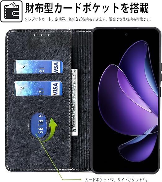 NicMool OPPO Reno 13A/13F 対応 ケース 手帳型 スマホケース スマホカバー 携帯カバー 手帳型 PUレザー 柔軟 TPU 肌触り良い 耐摩擦 財布型 レトロなスタイル カバー カード収納ケース 内蔵マグネット 耐衝撃 スタンド機能 おしゃれ 全面保護 手帳型 ケース OPPO Reno 13A 用(ブラック) a
