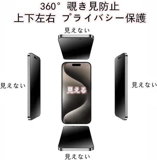 【360°覗き見防止&革新的なガイド枠】iPhone 16 Pro Max ガラスフィルム 新型のガイド枠付き 超簡単貼り付け 自動除塵 360°ぞき見防止 上下左右 プライバシー保護 全面保護 気泡レス 自動吸着 貼りやすい 日本旭硝子製 アイフォン 16 Pro Max 用 のぞき見防止 ガラスフィルム a