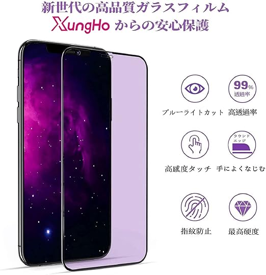 【ブルーライトカット】 iPhone11/iPhoneXR 用 ガラスフィルム ブルーライト 液晶保護フィルム アイホン 11/XR 用 強化ガラス 【耐衝撃/貼り付け簡単/全面保護/高透過率/指紋防止/硬度9H/2枚入り】 a