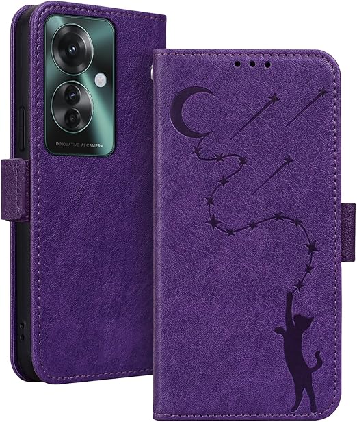 OPPO Reno 11A ケース オッポリノ 11a ケース 手帳型 スタンド機能 おっぽ スマホ reno11 a ケース マグネット カード収納 耐衝撃 reno11 a 財布型 CPH2603 ケース 全面保護 可愛い 猫柄 柔らかいTPU ONETHEFUL oppo reno11a ケース - 紫 a