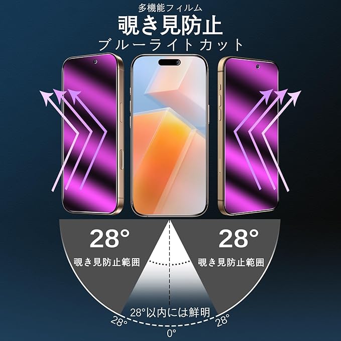 【★2種機能★覗き見防止+ブルーライトカット★】本製品はブラインドの設計原理をスチール化膜に利用し、数回の覗き見防止角度テストを経て、最終的に28°の最適な覗き見防止角度を選定し、自分がよく見えると同時に、プ