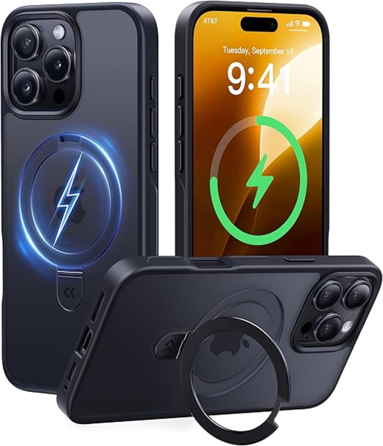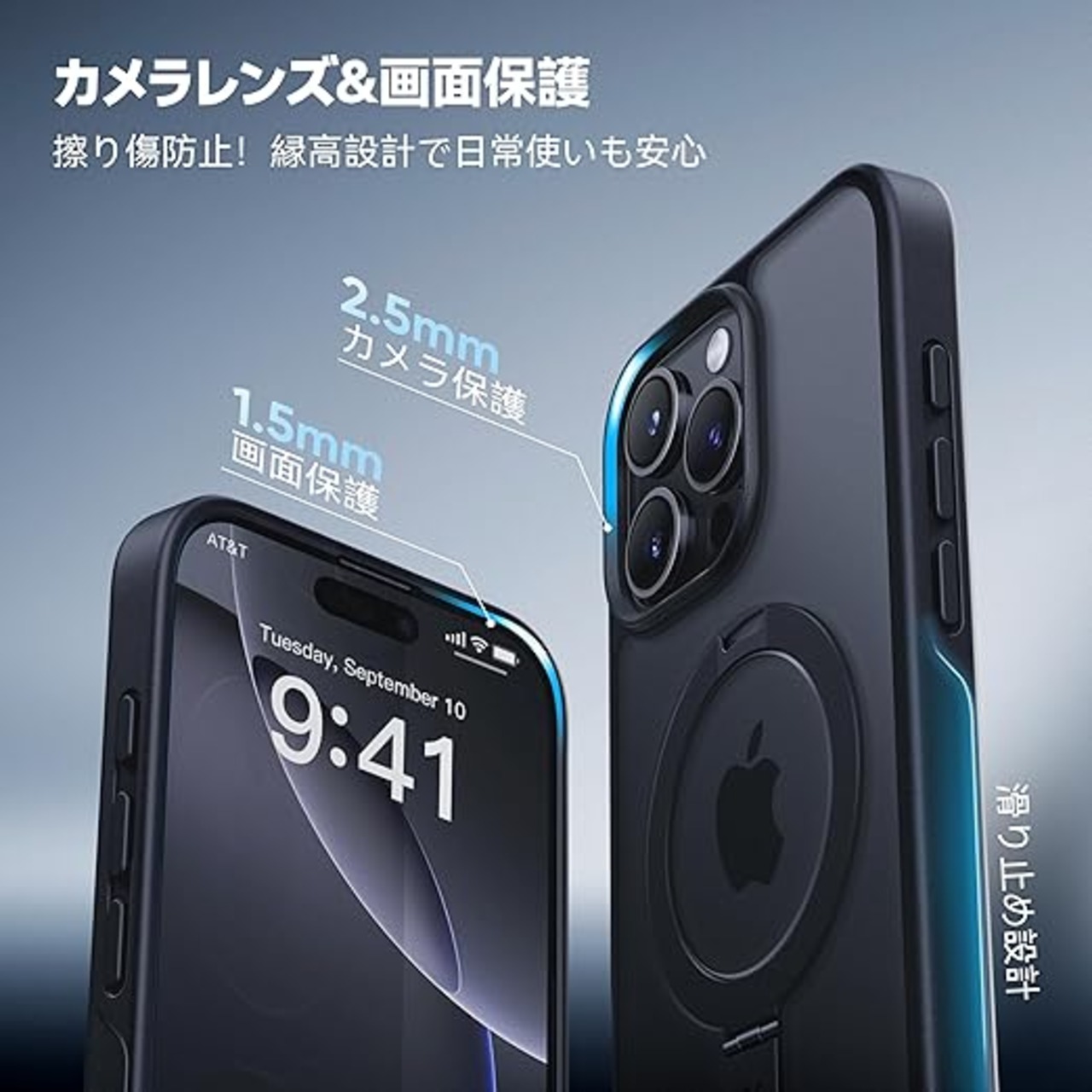 【8年間の技術結晶!4in1超万能モデル】CASEKOO iPhone 16 Pro 用 ケース 米軍MIL規格 横縦両立 指紋防止 マット仕上げ 最大25W急速充電対応 MagSafe対応 黄変防止 半透明 ストラップホール付き ワイヤレス充電対応 アイフォン16pro 用ケース 6.3インチ「MagicStand」(ブラック) a