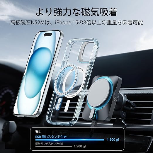 【デザイン受賞シリーズ!】ESR iPhone 15 ケース 米軍MIL規格 耐衝撃 隠れスタンド iphone15 ケース スマホケース 傷防止背面 黄変防止 防指紋 アイフォン15 ケース アジャスタブルスタンド Classicシリーズ ライトブルー a