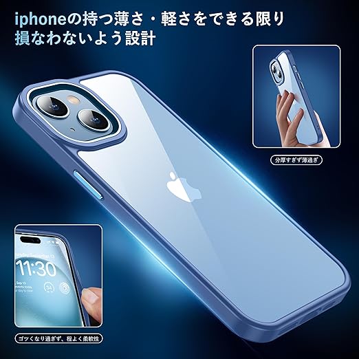 iphone15 用 ケース ブルー 耐衝撃 カメラレンズ保護付き アイフォン15 用 ケース 米軍MIL規格 耐久性 黄ばみ防止 アイホン15 用 ケース ワイヤレス充電対応 対応 SGS認証 スマホケース カバー 6.1インチ XIWXI a