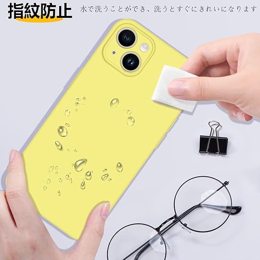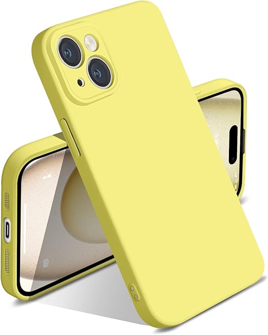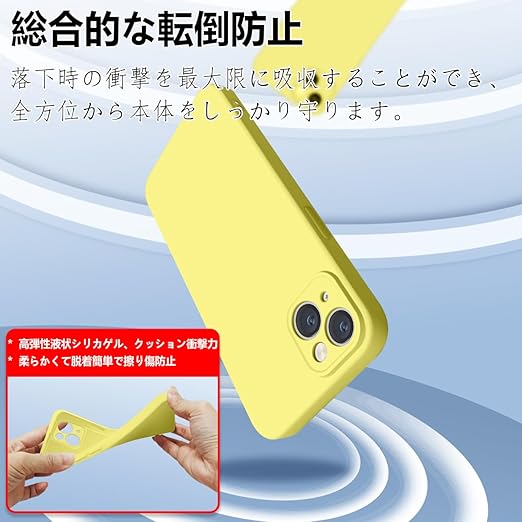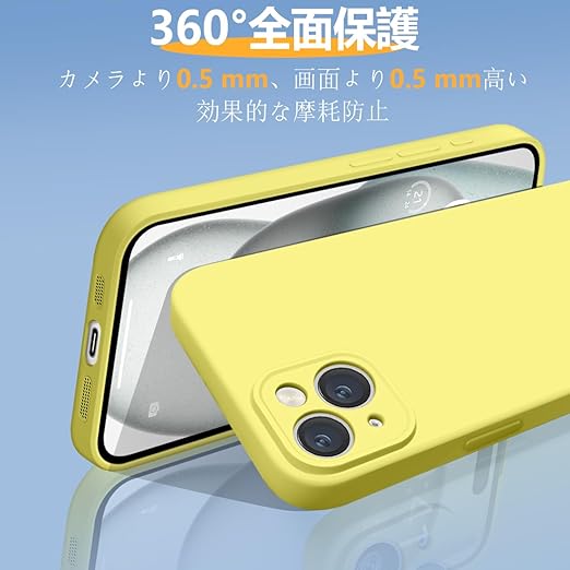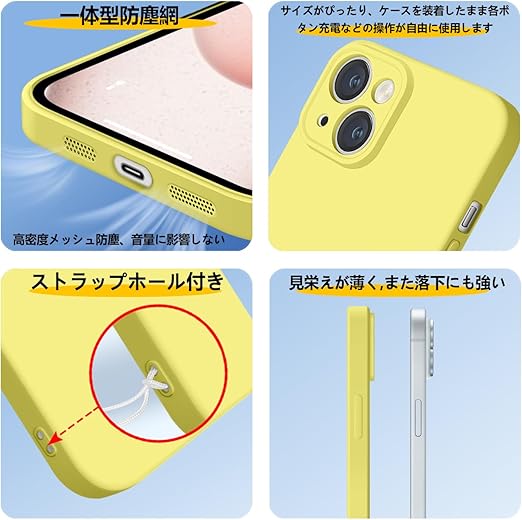 iPhone 15 ケース シリコン 液体シリコン 耐衝撃 アイフォン15 カバー 薄型 軽量 ソリッドカラー シンプル ストラップホール付き マット感 人気 指紋防止 レンズ保護 ソフト ワイヤレス充電対応 (イエロー) a