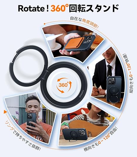 【意匠権を取得!多機能360度回転スタンド】TORRAS iPhone 15 Pro Max 用 ケース 縦横両対応 リング Halbachマグネット搭載 MagSafe対応 ワイヤレス充電対応 米軍MIL規格 耐衝撃性 防指紋 いphone15pro max用ケース ジャスタブルスタンド 6.7インチ「UPRO Ostand R」ブラック a