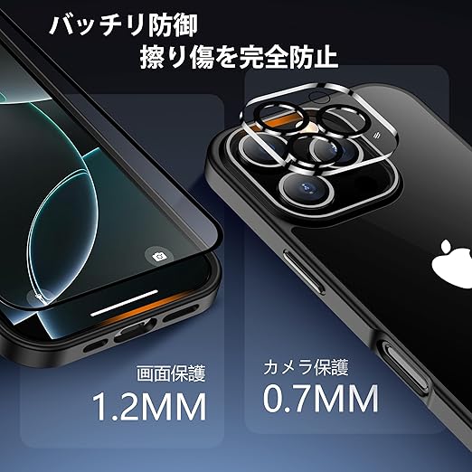 iPhone 16 Pro ケース ブラック レンズ?ガラス保護付き 黄変防止 アイフォン16 プロ用 耐衝撃 アイフォン 16 ぷろ用 指紋防止 落下防止 耐久性 ストラップホール付き 薄型 軽量 ソフト ワイヤレス充電対応 アイホン16pro(6.3インチ)カバー a
