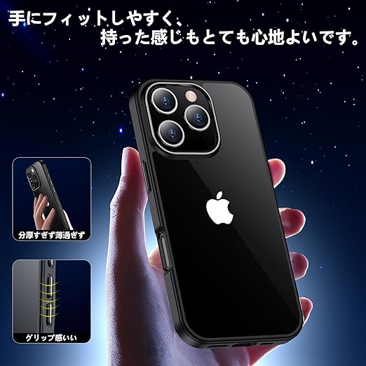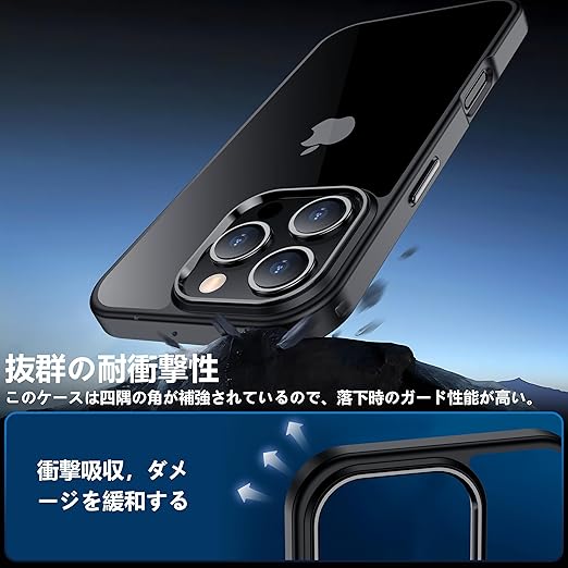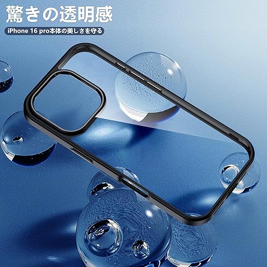 【驚きの透明度】透き通った高い透明度を誇り、iPhone 16pro本来の美しいデザインとカラーをそのままに楽しめます。黄変に強い素材を採用し、常に透明感を保ち、長時間使用しても黄色に変わりません。アイフォン16プロケースの背面は放熱性良いポリカーボネート素材で、熱を効果的に放散し、バッテリーにとても優しいです。