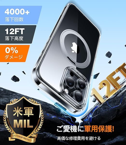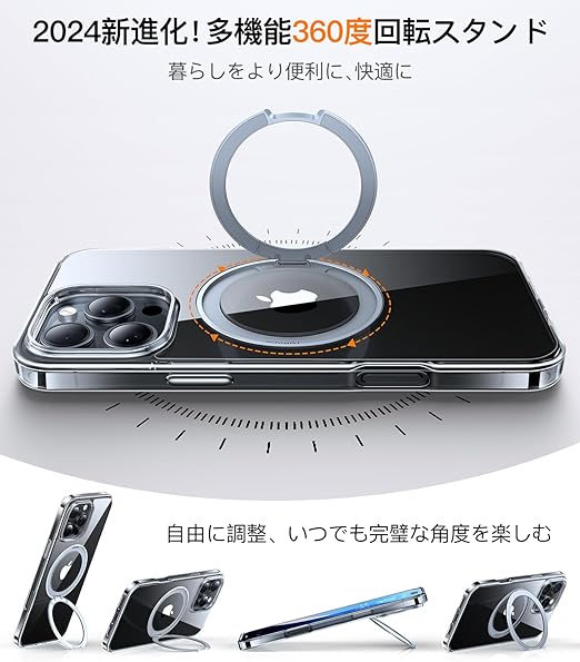 【多機能360度回転スタンド・O型リング創始者】TORRAS iPhone16 Pro 用 ケース クリア縦横両対応 ハルバッハマグネット搭載 MagSafe対応 米軍MIL規格耐衝撃 リング 指紋防止 黄変防止 マグセーフ対応 レンズ保護 三眼 いphone16pro 用 ケース 6.3インチ「Ostand R」クリア a