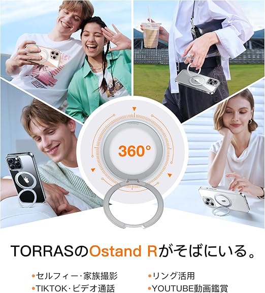 【スタンドケースの創始者・2025斬新アップグレード!】過去4年間、TORRASはスタンド機能スマホケースに情熱を注ぎ、地道に努力している結果、「Ostand R」が誕生。今はすでに四代目にアップグレードした!ケースを単なる飾り物ではなく、あなたの暮らしを便利にする魔法のケース!片手操作が楽、動画鑑賞が最適、握り調整が簡単に!いつでも良い角度で置いておける。※品質保証付き:TORRASは価格以上の品質保証をお約束し、通常の保証期間は180日間だが、保証登録をすることで365日間に延長可能。万が一