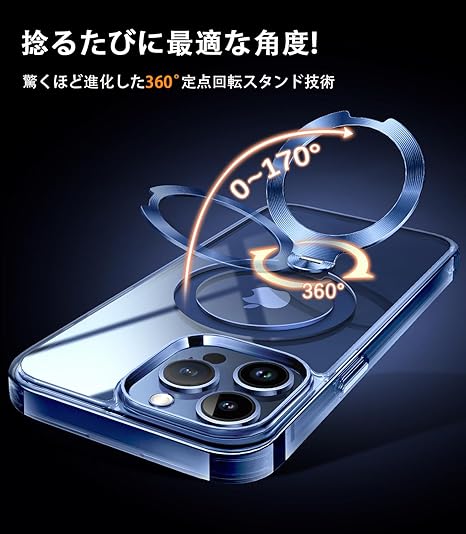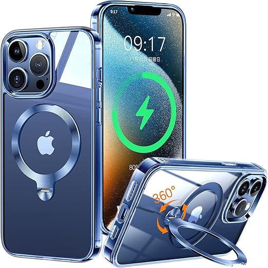 【唯一無二・360°回転CD スタンド】ZapNet iPhone 13 Pro Max用 クリア ケース Magsafe 対応 [定点スタンド・超絶安定性][本体を再現・極透明]ストラップホール付き マグセーフ ワイヤレス充電対応 黄変防止 米軍MIL規格取得・耐衝撃 アイホン13プロマックスケース マホケース13 Pro Max 人気 6.7インチ(ブルー) a