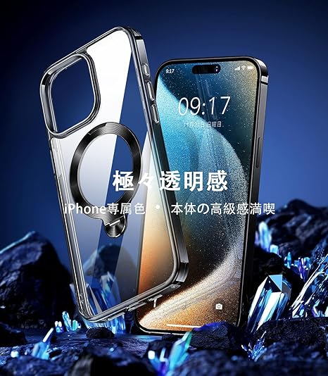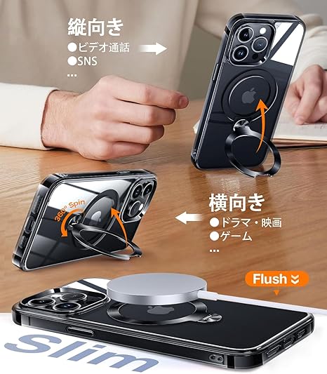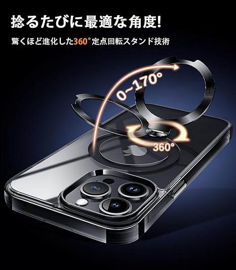 【唯一無二・360°回転CD スタンド】ZapNet iPhone 16 Pro 用 クリア ケース Magsafe 対応 [定点スタンド・超絶安定性][本体を再現・極透明]ストラップホール付き マグセーフ ワイヤレス充電対応 黄変防止 米軍MIL規格取得・耐衝撃 アイホン16プロケース マホケース16 Pro 人気 6.3インチ(ブラック) a