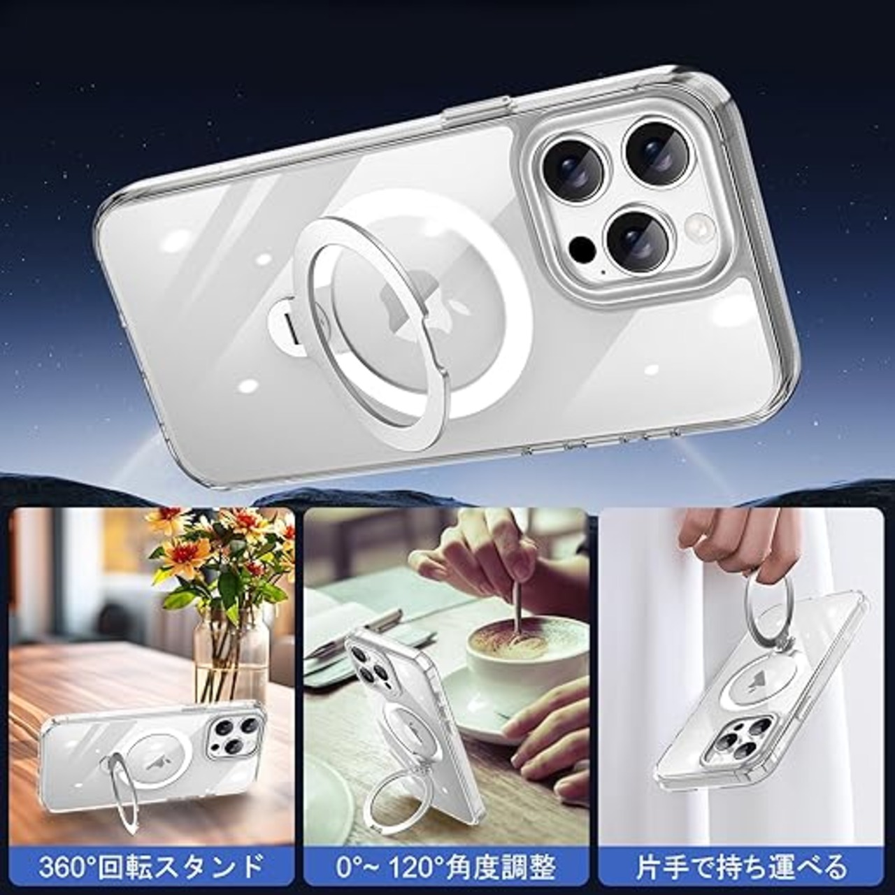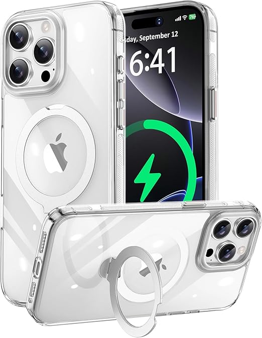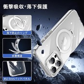 KISECASE iPhone 15 Pro Max 用 ケース Magsafe対応 ワイヤレス充電 磁気リング マグネット搭載 定点360度回転スタンド 耐衝撃 耐久性 黄ばみ防止 滑り止め 落下保護 傷防止 携帯ケース リング付き アイフォン15 Pro Max用 カバー ストラップホール(クリア, iPhone 15 Pro Max 用) a