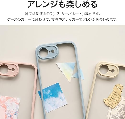 写真やステッカーを使ったアレンジも楽しめる背面クリア仕様/ストラップホール搭載