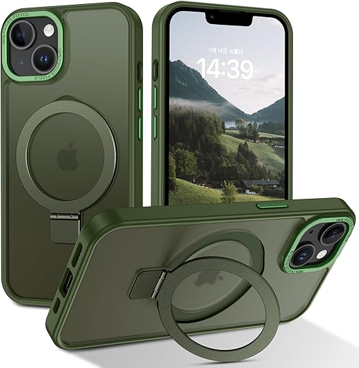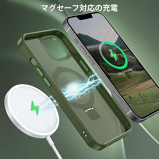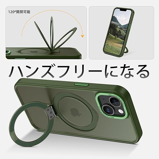 DUEDUE iPhone 13 Mini ケース MagSafe対応 アイフォン13mini ケース マグネット搭載 スタンド機能 120°開閉可能 グリーン 指紋防止 耐衝撃 一体型 薄型 TPUケース 車載ホルダー対応 ワイヤレス充電 全面保護 a