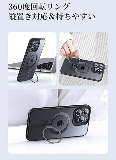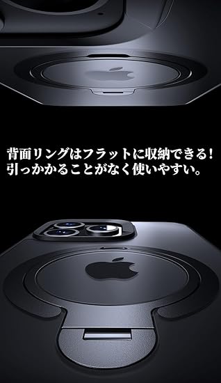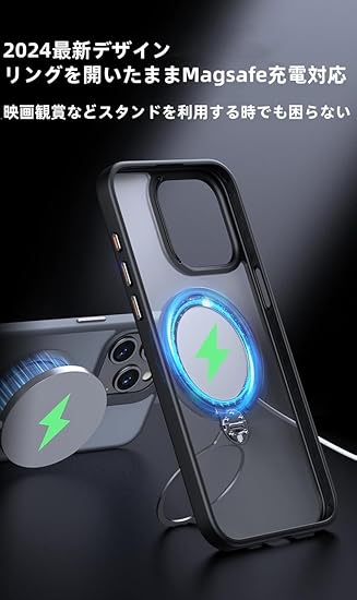 2024最新のダブルリング+定点360度回転スタンド : 2024新開発進化版、土台のマグネットリングとスタンドリングのダブルデザインで、スタンド利用時(リングを開いた状態)でも充電可能、マグセーフアクセサリ対応。複数の定点スタンド止め付き、不意に倒れる心配なし。背面のリングもフラットに収納出来るので引っかかることもなく使いやすい、机に置いた時もガタガタしません。
