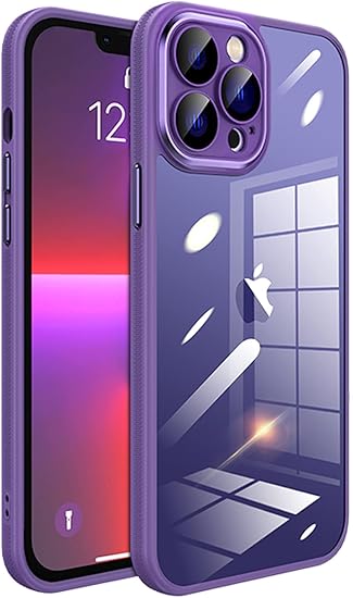 Donocao iPhone 16 Proケース クリア背面 シリコン耐衝撃 薄型 かわいいアイホンケース カメラカバー付きの一体型 4kHDガラスフィルムレンズ保護 滑り止め お洒落な金属ボタン 全面保護 ワイヤレス充電対応 指紋防止 黄変防止 オシャレなアイフォン16プロケース ディープパープル a