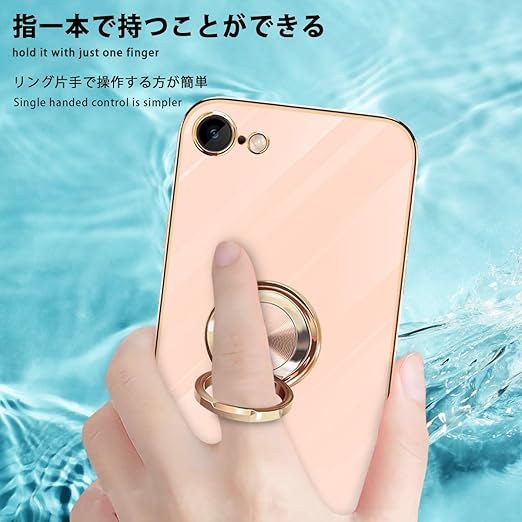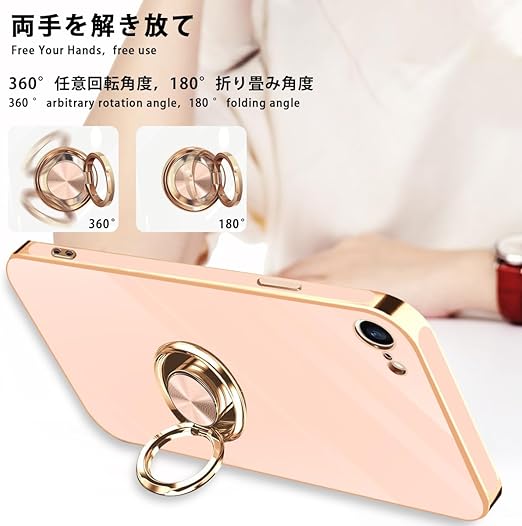 iPhone SE ケース iPhone第3世代 ケース iPhone第2世代 ケース iPhone8/7 ケース リング 耐衝撃 360°回転 スタンド機能 車載ホルダー対応 アイフォン SE3/SE2 ケース 一体型 携帯ケース 保護カバー レンズ保護 ストラップホール付き 4.7インチ (ピンク) a