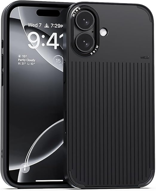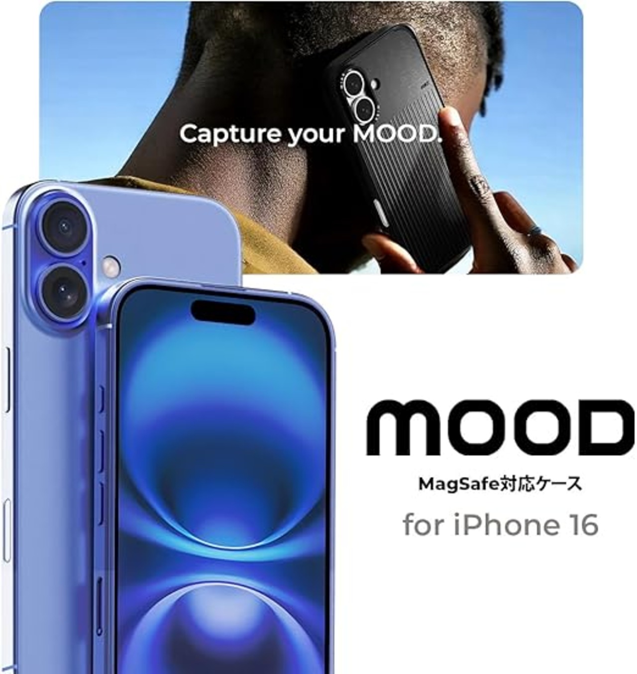 miak iPhone 16 用 MOOD MagSafe対応ケース [ スタイリッシュ縦ラインデザイン メタルカメラフレーム レンズ保護 ポリカーボネート TPU ハイブリッド構造 衝撃吸収 防塵設計 ディスプレイ保護設計 ストラップホール付き ] ブラック MA27636i16【国内正規品】 a