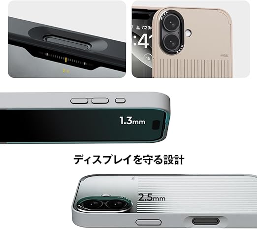 ポリカーボネート背面とTPUベゼルのハイブリッド素材で、高耐久、着脱もスムーズ。