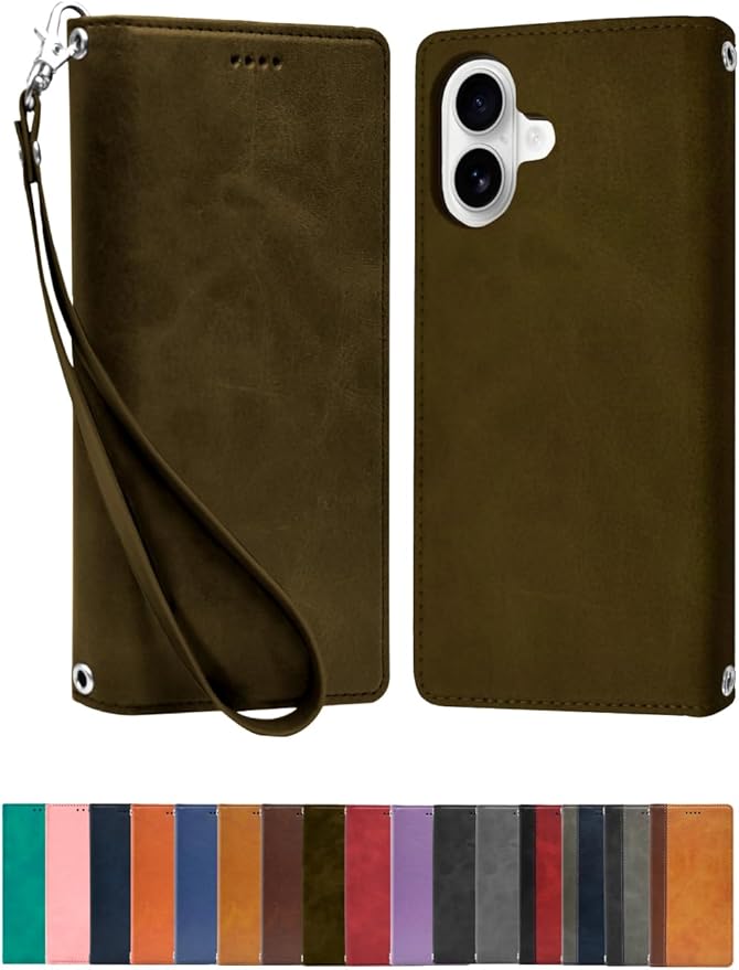 シズカウィル iPhone 16 用 ケース カバー 手帳型 本革調 レザーケース オリーブ 1個入り a