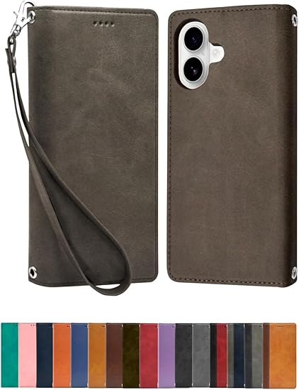 シズカウィル iPhone 16 用 ケース カバー 手帳型 本革調 レザーケース グレー 1個入り a