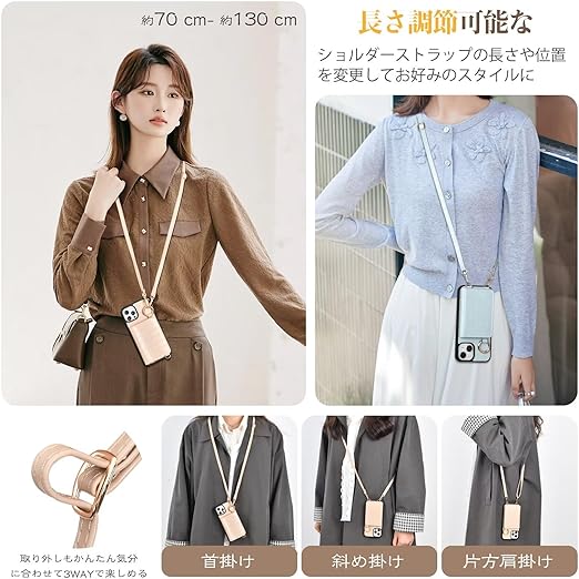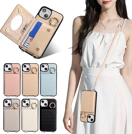iPhone 15 手帳型 ケース ショルダー おしゃれ ワニ柄です スマホケース iPhone 15 手帳型 ショルダー 斜めがけ iPhone 15 手帳型ケース ショルダー 収納 ミラー付き 首かけ 女性 ストラップ 財布型 カバー アイフォン 15 携帯電話ケース レディース スマホケース ショルダー付きケース 小銭入れ 肩縄付き 調節可能な 横置き スタンド機能(アプリコット) a