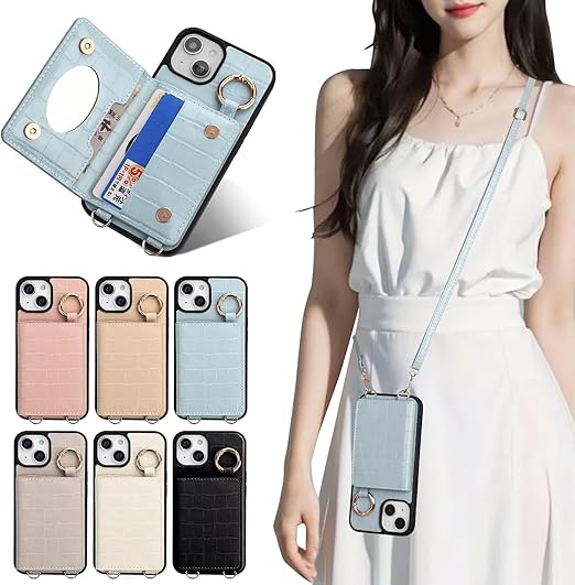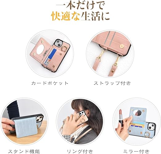 iPhone 15 手帳型 ケース ショルダー おしゃれ ワニ柄です スマホケース iPhone 15 手帳型 ショルダー 斜めがけ iPhone 15 手帳型ケース ショルダー 収納 ミラー付き 首かけ 女性 ストラップ 財布型 カバー アイフォン 15 携帯電話ケース レディース スマホケース ショルダー付きケース 小銭入れ 肩縄付き 調節可能な 横置き スタンド機能(ブルー) a