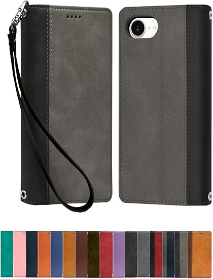 シズカウィル iPhone 16e ケース カバー 手帳型 本革調 レザーケース 1個入り グレー×ブラック a