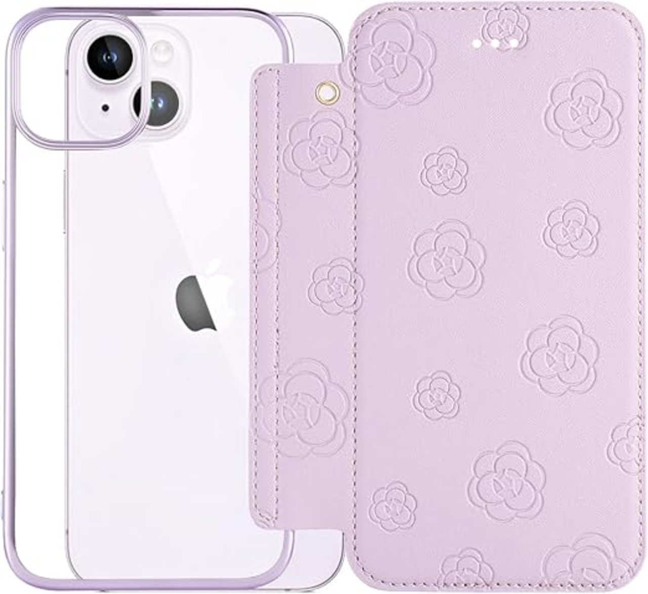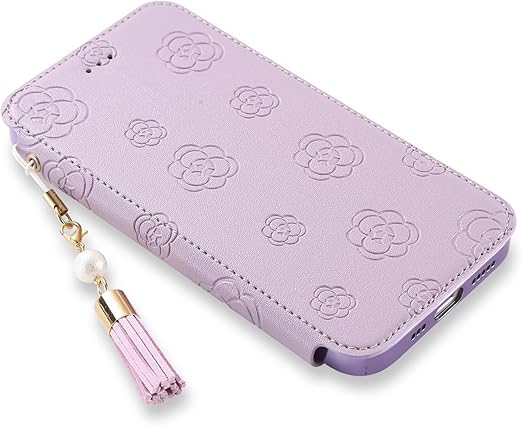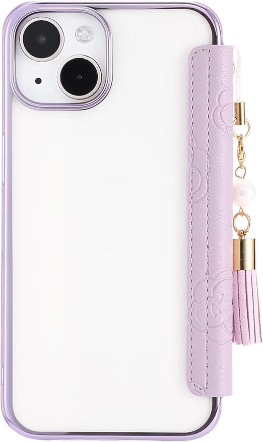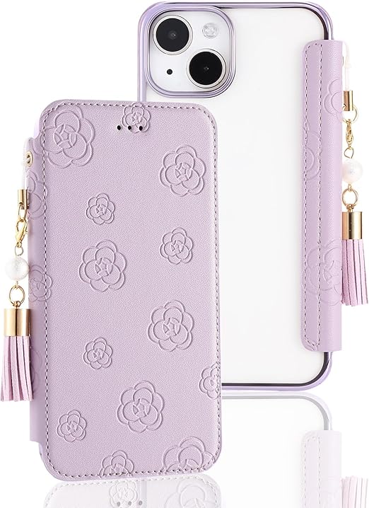 iphone 15 手帳型レザーケース マグネットなし 背面クリア 6.1インチ 2023モデル ソフトカバー タッセル付き ソフトカバー 押し型の花柄 iphone15 薄型ケース ストラップ付きケース iphone15 おしゃれ手帳型ケース 機能 手帳携帯カバー アイフォン15 財布型カバー 多機能 プレミアム キュート レディース きれい ライトパープル a