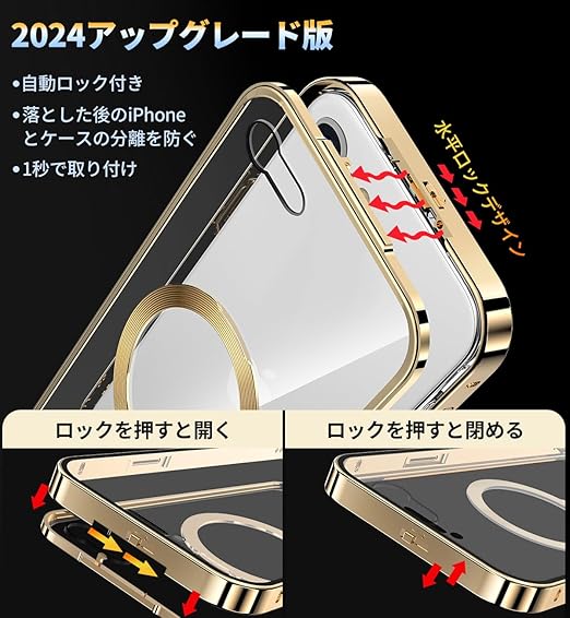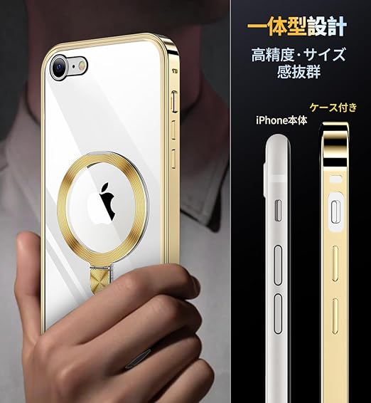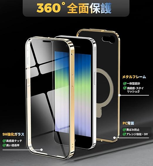 HGUTREY【スタンド機能付き・アクションボタン】 iPhone SE3 用 ケース 第3世代 2022 iPhone SE2 カバー 第2世代 クリア ロック付き【CDリング・MagSafe対応】 9H強化ガラス PC背面 両面 ストラップホール付き アルミバンパー メタルフレーム 高感度タッチ ワイヤレス充電対応 iPhone 第3世代 第2世代 用 ケース 4.7インチ(ゴールド) a