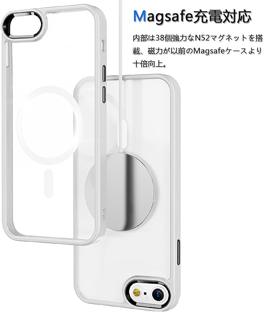 iPhone SE ケース 第2世代 第3世代 iphone 8 ケース iphone 7ケース スマホカバー マットマグネット搭載 ワイヤレス充電 耐衝撃 指紋防止 滑り止め 米軍MIL規格・Magsafe対応 アイフォンse 用カバー インチ PinLiSheng (ホワイト, iPhone SE2 iPhone SE3 iPhone8 iPhone7) a