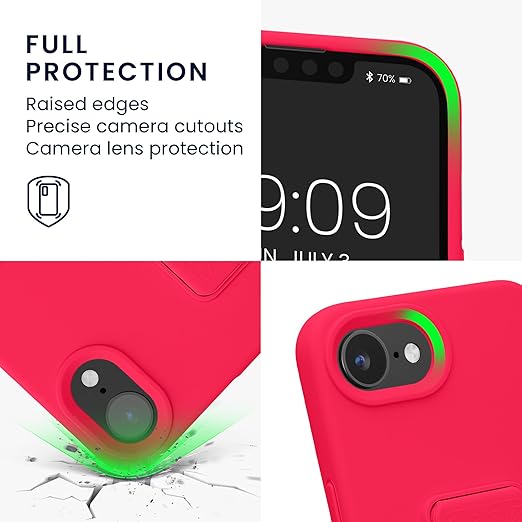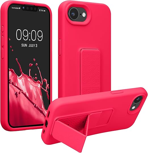 kwmobile Apple iPhone 16e対応 ケース - スマホ スタンド 保護ケース スマホカバー TPUケース - ネオンピンク a