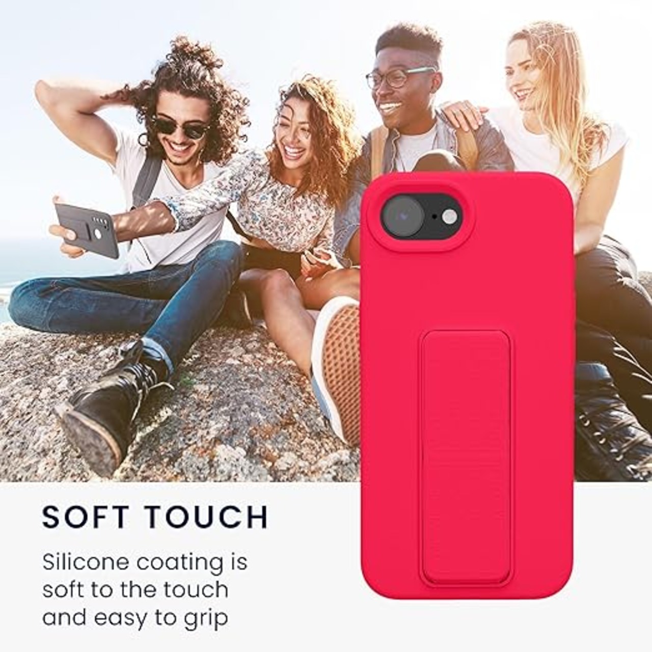 3 in 1: バックケースの背面部分は、スマホリングやスマホストラップとしてお使いいただけるため、落下防止にも◎また、このバンド部分はケースに内蔵された磁石によりスマホスタンドとしても機能し、動画視聴などを快適にサポートしま