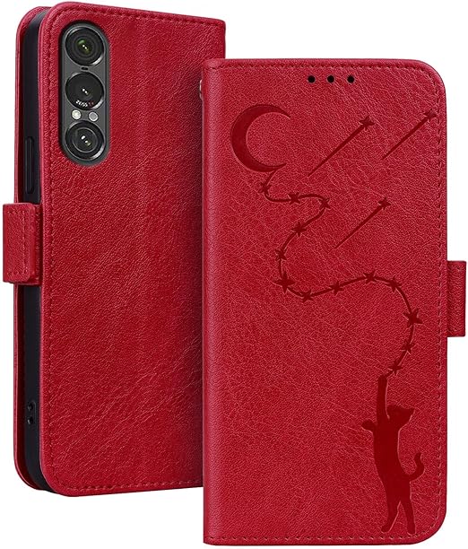 Xperia 1 VII ケース 手帳型 エクスペリア1 VIIケース 猫柄 SO-51F / SOG15 / XQ-FS44 スマホケース カード収納 耐衝撃 xperia 1 vii カバー 薄型 スマホケース エクスペリア 1 マーク 7 財布型 スタンド機能 サイドマグネット カード入れ PUレザー TPU 全面保護 ねこ 6.5インチ対応 かわいい 赤 a