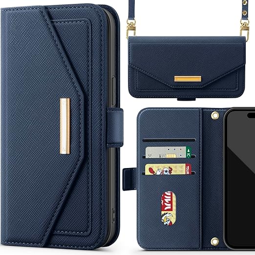 NODALA iPhone 16e ケース 手帳型 アイフォン16e スマホケース 財布型 ショルダー あいふぉん16e 携帯ケース 肩掛け 斜めがけ カバー 手帳型 小銭入れ カード収納 ロングストラップ 長さ調節可能 ミラー付き女性 おしゃれ 横置 ステント機能 折りたたみ 耐衝撃 PUレザー ブルー a