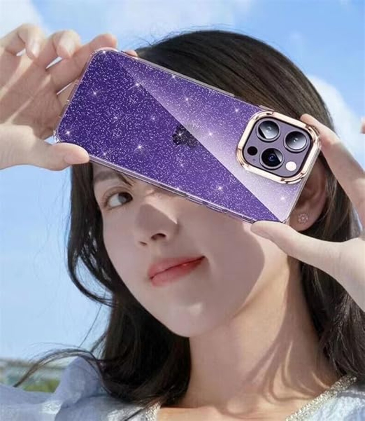 QLTYPRI iPhone 14 用 ケース iPhone 13 用 ケース クリア グリッター おしゃれ 韓国 キラキラ 透明 可愛い 耐衝撃 スマホケース ワイヤレス充電対応 ストラップホール付き アイフォン13/14 カバー 6.1インチ 対応 - パープル a