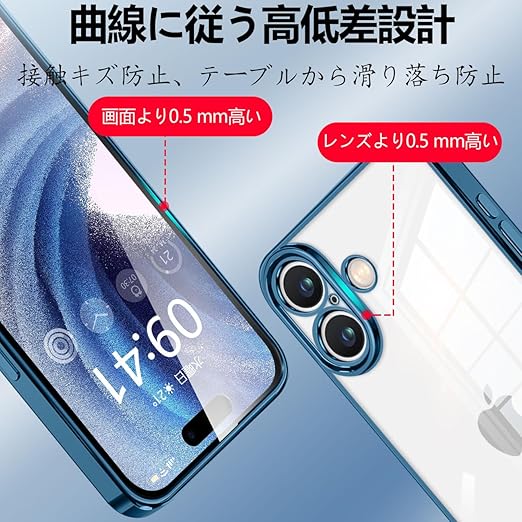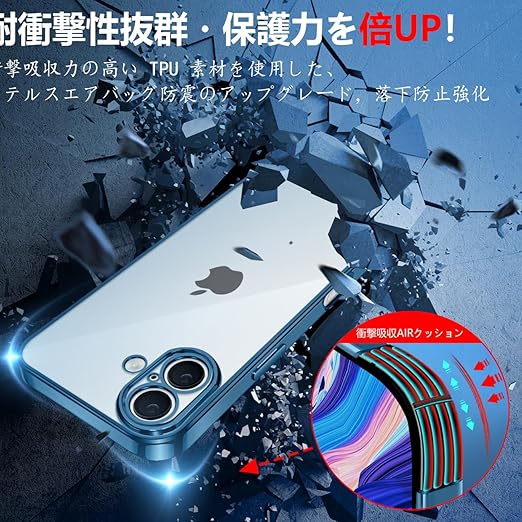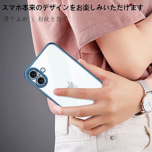iPhone16 用 ケース クリア カメラ保護 いphone16 スマホケース 薄型 TPU 軽量 変形防止 人気 スリム ソフト アイフォン 16 カバー 衝撃吸収 ストラップホール付き(ブルー) a