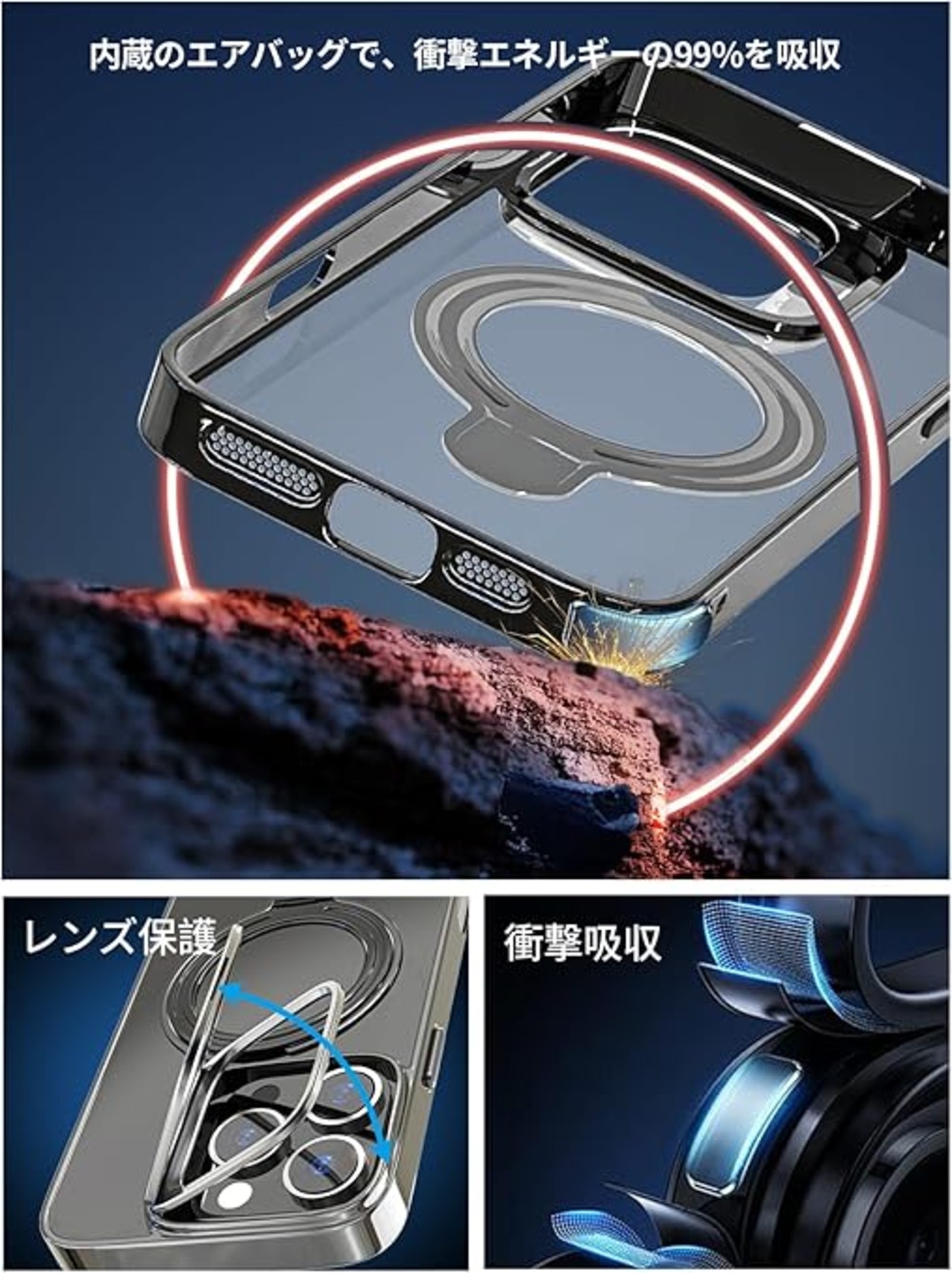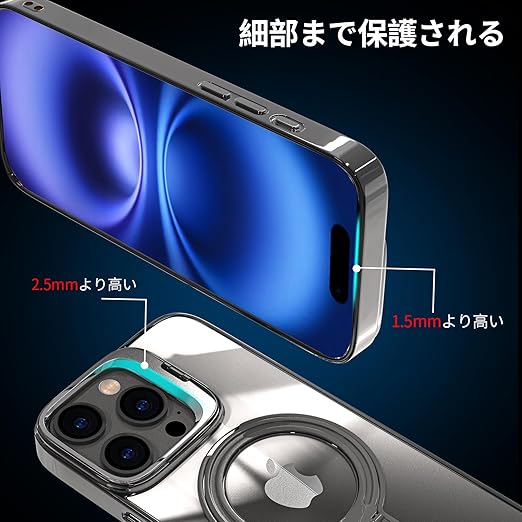 【クリア背面・iPhone専属色メッキバンパー・本体を再現】iphone 16 Pro スタンド ケース には、極めて透明な背面と金属のように輝く枠が相まって、 スマホの高級感を際立たせます。スマホのエレガントなデザインにインスパイアされ、メッキ加工技術でiPhone専属の色合いに完璧に調和し、枠が金属のようにキラキラ輝きます。背面は究極の透明度を実現し、iPhoneロゴを鮮明に見せます。スマホの高級感を引き立て、その魅力をさらに高めます。また、これクリアケースは特許耐黄材料を使って、iPhon