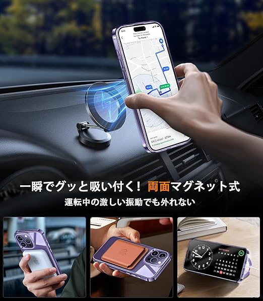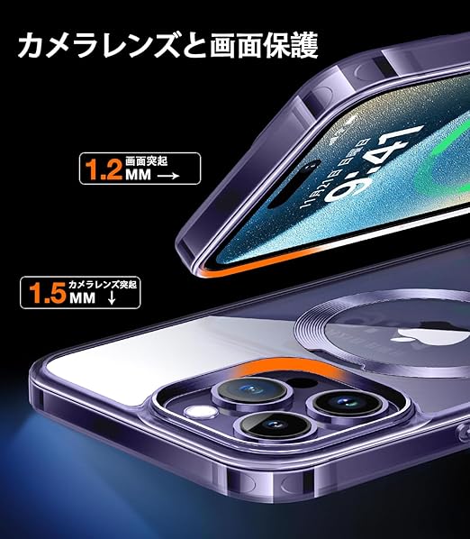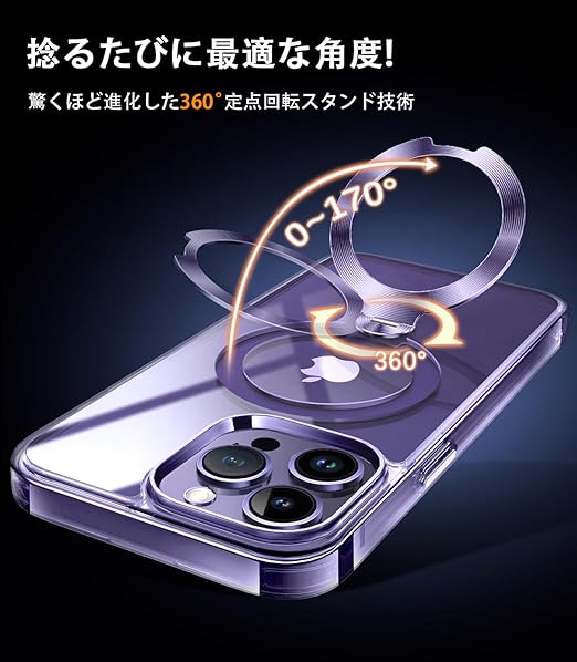 【唯一無二・360°回転CD スタンド】ZapNet iPhone 14 Pro Max用 クリア ケース Magsafe 対応 [定点スタンド・超絶安定性][本体を再現・極透明]ストラップホール付き マグセーフ ワイヤレス充電対応 黄変防止 米軍MIL規格取得・耐衝撃 アイホン14プロマックスケース マホケース14 Pro Max 人気 6.7インチ(パープル) a