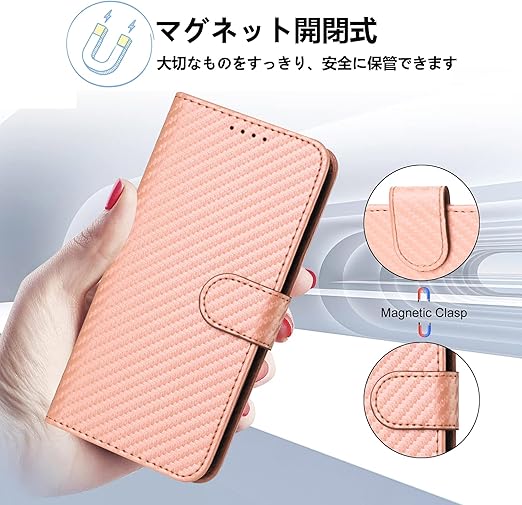Gedurya Xperia 1 VI ケース 手帳型 エクスペリア1 vi スマホケース 炭素繊維ブレイドスタイル 肌触り良い SO-51E ケース SOG13 携帯カバー マグネット開閉式 スタンド機能 軽量 薄型 Xperia1 VI ケース 手帳型 指紋防止 人気 上質 Xperia 1 第6世代 SO51E 携帯ケース 全面保護 財布型 便利 - ピンク a