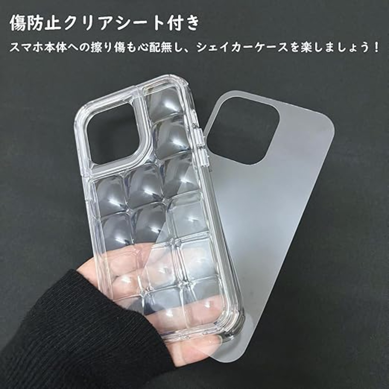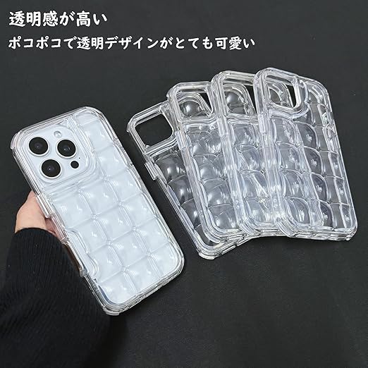 Sakanana iPhone 16 Pro Max ケース 韓国 可愛い ぽこぽこ クリア 人気 おしゃれ シャカシャカ 傷防止クリアシート付き シェイカーケース シンプル 小物収納 ソフトケース a