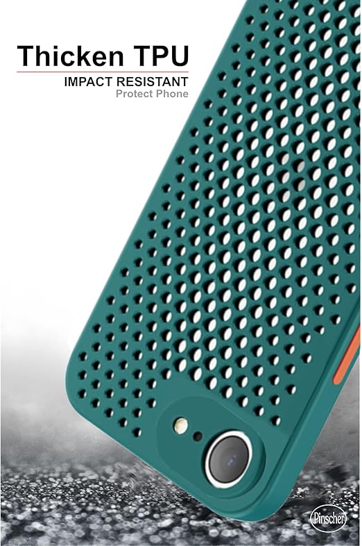 【Pinscher(ピンシャー)】 iPhone16e (ダークグリーン) 6.1インチ メッシュ ケース 放熱 冷却 アイフォン16e ケース スマホケース カバー バンパー TPU Qi充電 耐衝撃 防衝撃 擦り傷防止 滑り止め 軽量 薄型 pc002-16e-dg a