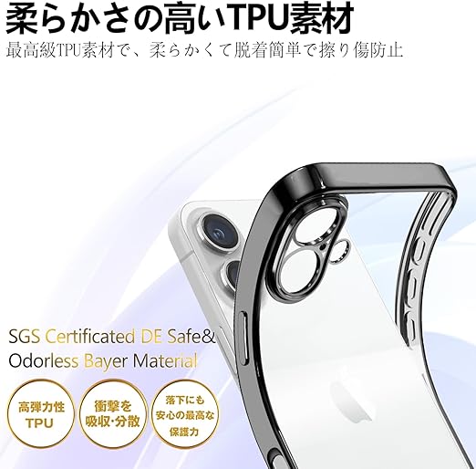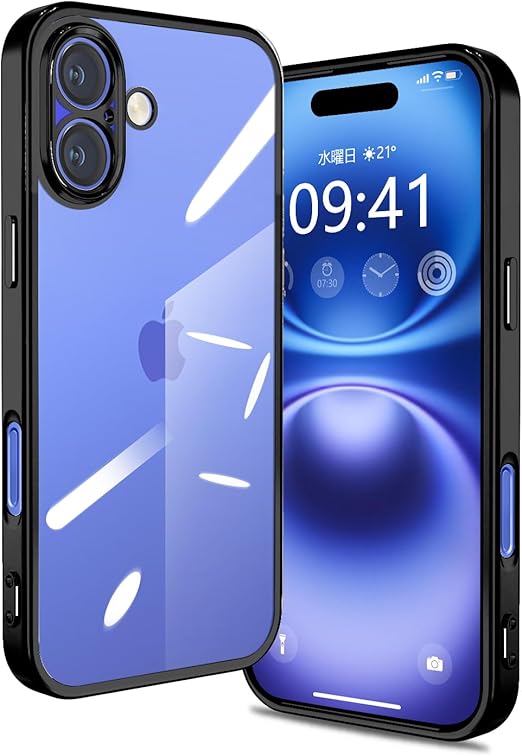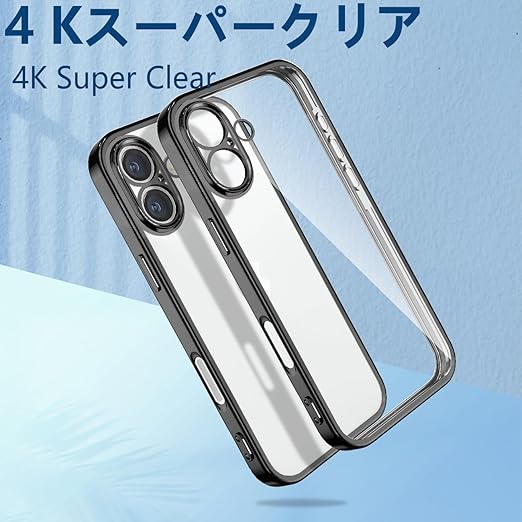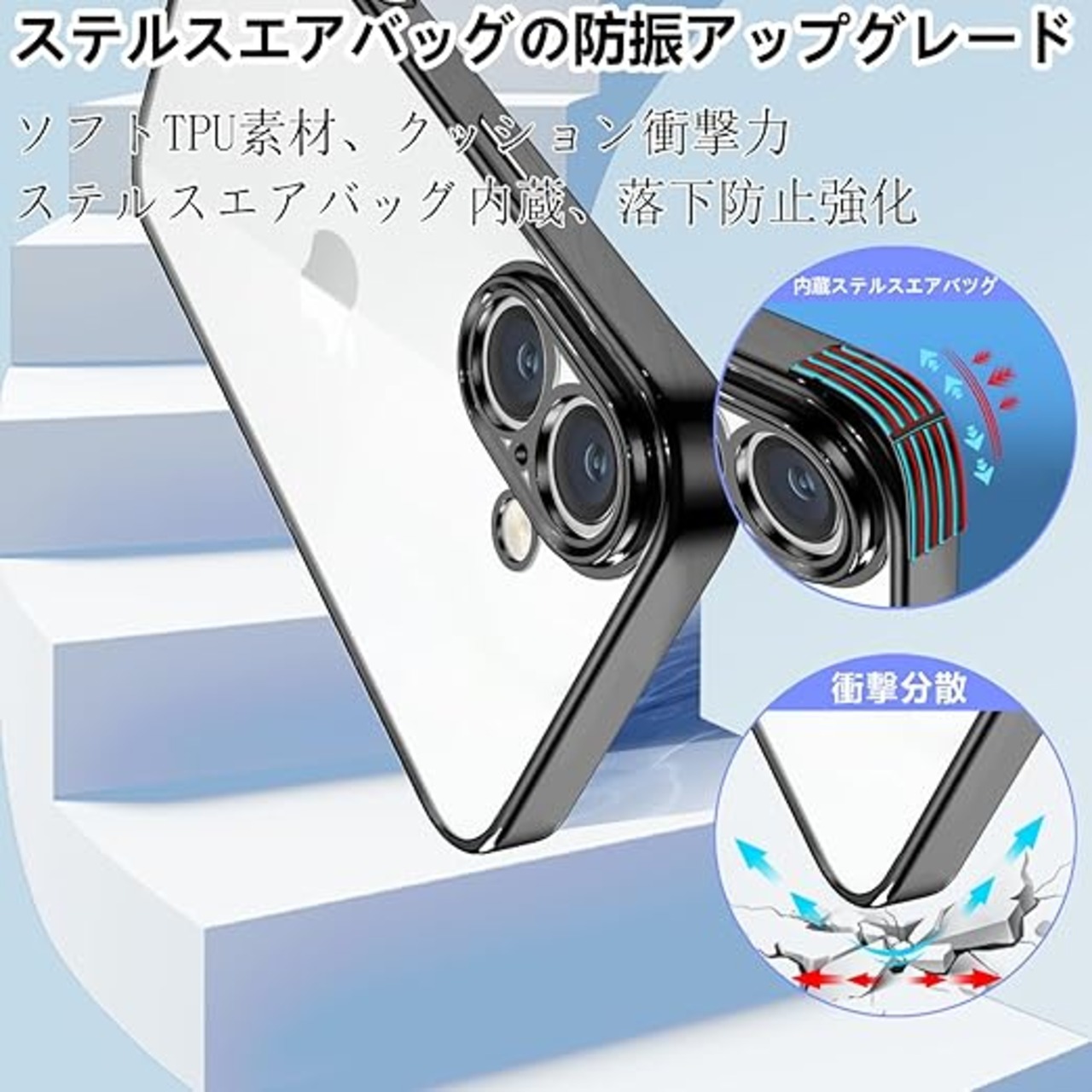 iPhone 16 ケース クリア アイフォン16 カバー スマホケース 耐衝撃 可愛い 透明 アイホン ソフト TPU スマホカバー ストラップホール付き(ブラック) a