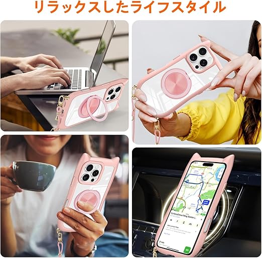 iPhone SE3 SE2 【第3/2世代】 ケース iPhone7/8用 ケース クリア MagSafe対応 360度回転スタンド リング付き PC背面 + TPUバンパー ネック ショルダー カバー 肩掛け 首掛け 斜めがけ 紐付き 韓国 かわいいファッション 耐衝撃 米軍MIL規格取得 車載対応 アイフォン 7/8/se2/se3/se スマホケース b