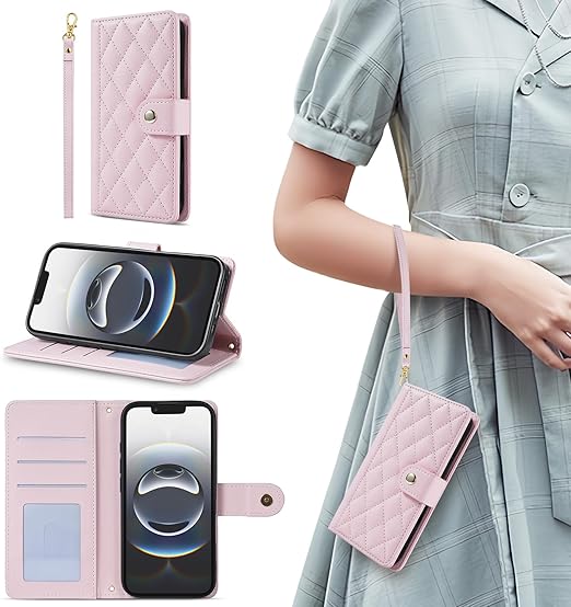 対応iPhone 16 ケース 手帳型 【Vokpok】おしゃれ高級PUレザーとメタル金具マグネット開閉式 アイフォン 16 財布型 ケース カード収納機能 スタンド機能 耐衝撃 耐摩擦 液晶全面保護 レンズ保護 iPhone 16 スマホケース キルティグレザー調おしゃれ小香風 人気上品な シンプル気質 アイフォン 16 対応 6.1インチ,ピンク a