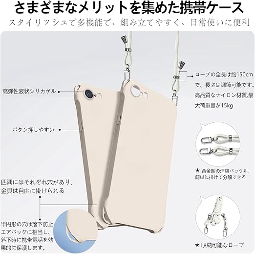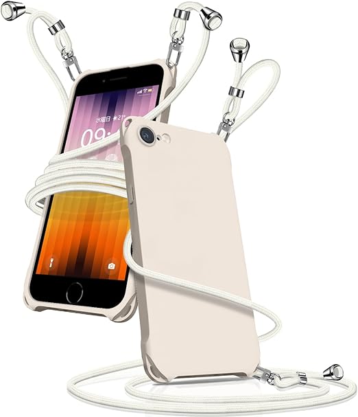 iPhone SE 第3世代 第2世代 ケース ショルダー シリコン iphone 8/7 スマホケース アイフォン7/8/se2/se3 カバー 耐衝撃 肩掛け 斜めかけ 縄掛けケース 紐付き 斜めがけ 織りストラップ付き 長さ調整可能 取り外し可能 傷付き防止 マット質感 指紋防止(アンティークホワイト) a