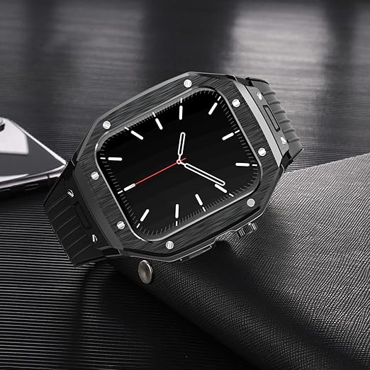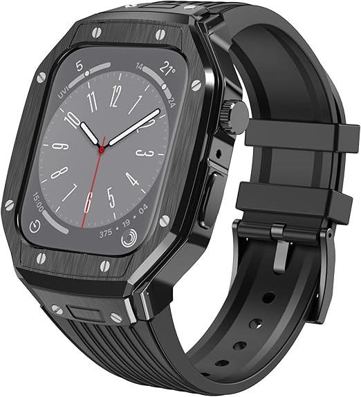 [LIRUWECH] for Apple Watch バンドとケースと背面ケースの3in1一体型デザイン 45mm/44mm apple watch 一体型バンド Apple Watch Series 9/SE/8/7/6/5/4対応 メンズ かっこいい アップルウォッチ バンド カバー付き apple watch アクセサリー(45mm/44mm,ブラックケースとブラックベルト) a