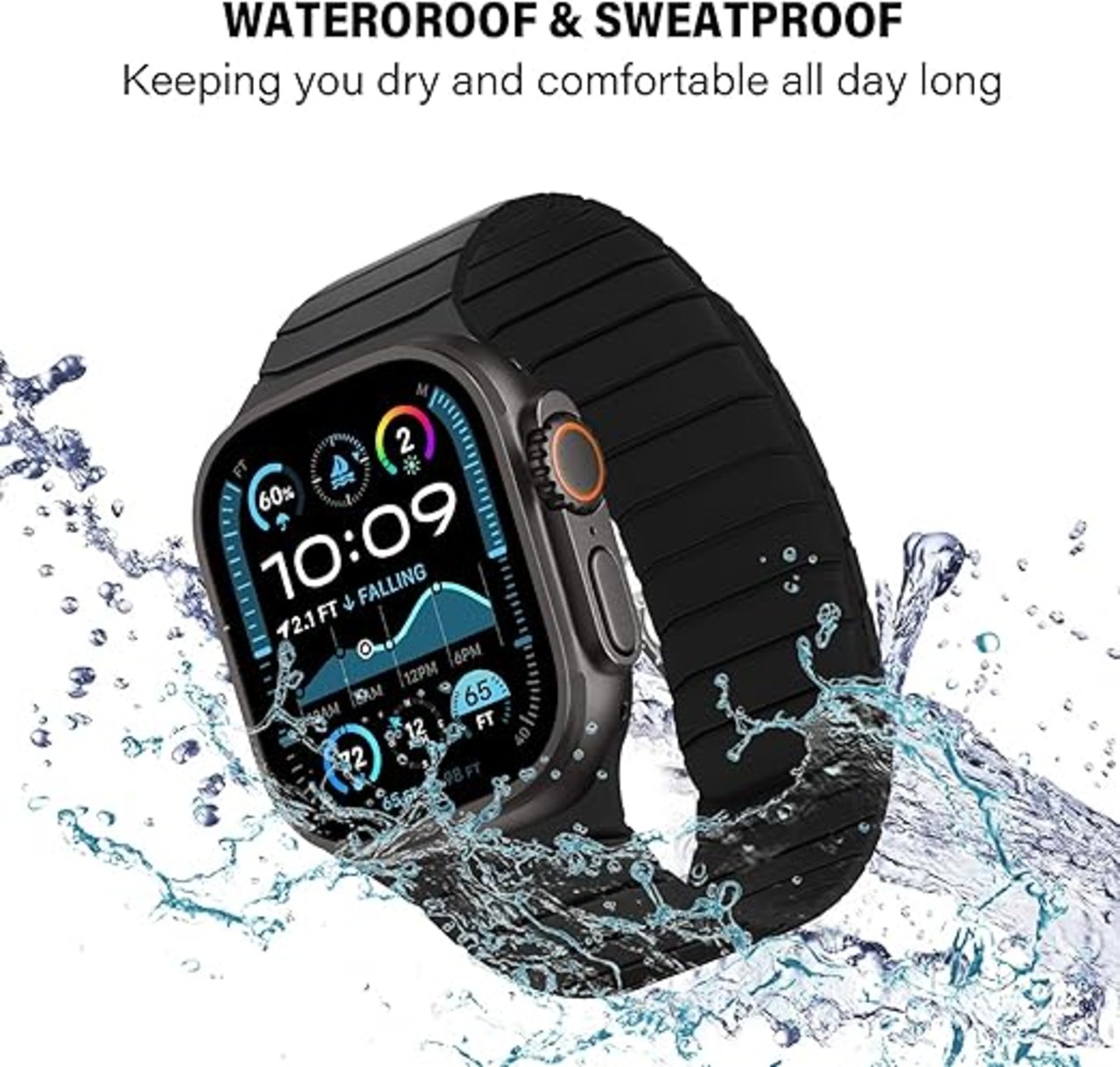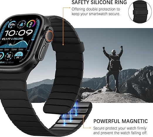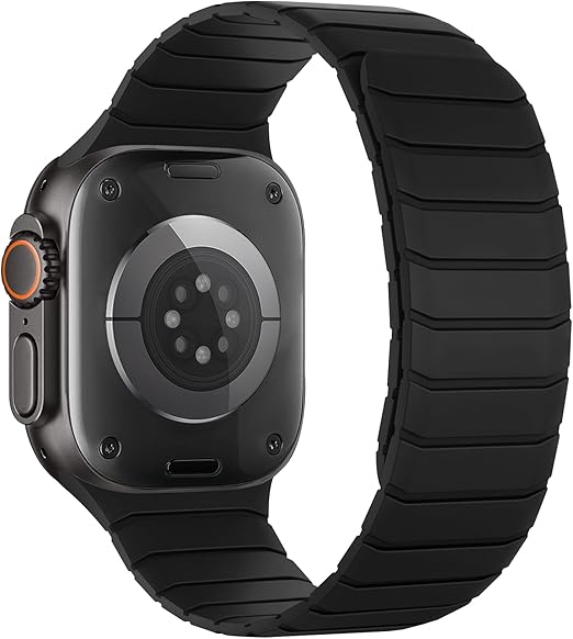 Sixmoat 磁気シリコンバンド コンパチブル Apple Watch 49mm 46mm 45mm 44mm 42mm コンパチブル iWatch スポーツループ 男女兼用 軽量ベルト Ultra SE Series 10 9 8 7 6 5 4 3 2 1,ブラック a